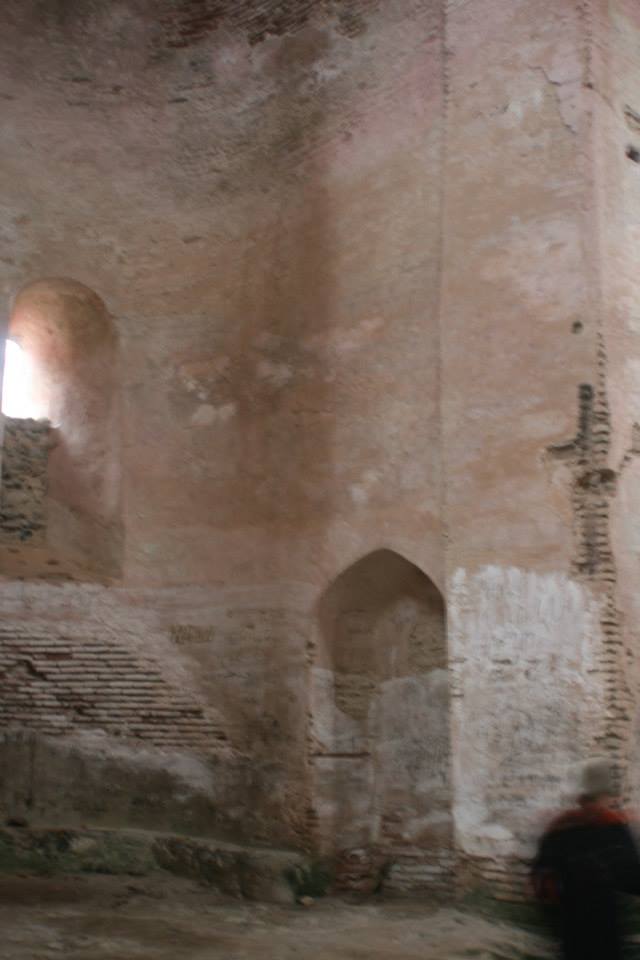 აქვე, მამაკაცის გამოსახულების მარჯვნივ, მისი მხარის გასწვრივ და ხელის მტევნის ზემოთ შეიმჩნევა რაღაც შენობა (ტაძრის მოდელი?) მუქი შეფერილობის საფეხუროვანი გადახურვით.